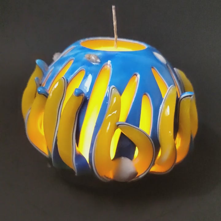 Modro-rumena dekorativna sveča – Poletno darilo za dom