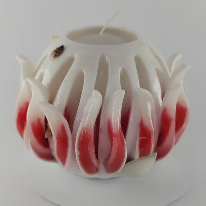 Ročno izdelana bela sveča z rdečimi detajli – Elegantno darilo